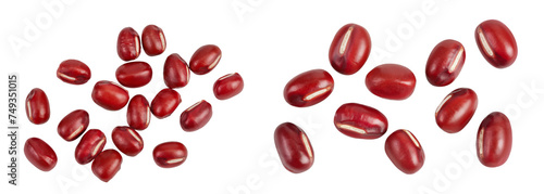 Red adzuki beans isolated on white background. Top view. Flat lay.