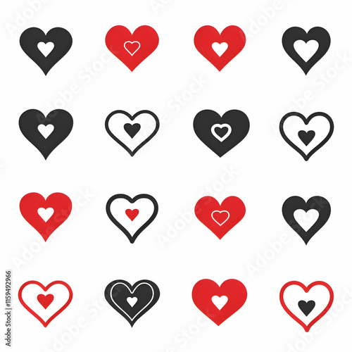 Red and Black Heart Shapes. Seamless Pattern for Valentines. Romantic Designs