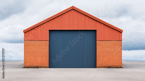 Red and Blue Industrial Warehouse Building Under Cloudy Sky