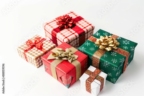 Red and green wrapped holiday presents with bows, Christmas, gifts, festive, celebration concept