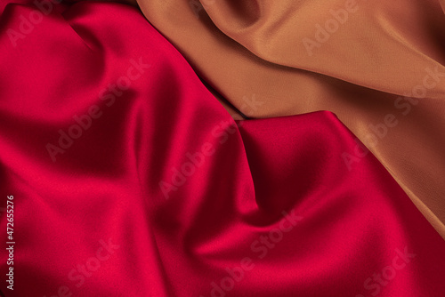 Red and orange silk or satin luxury fabric texture can use as abstract background.