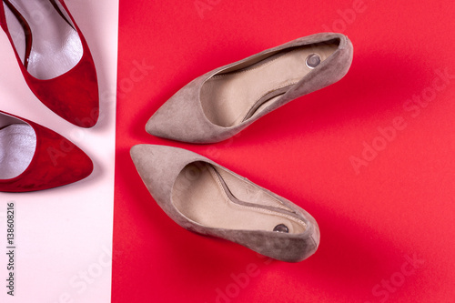 Red and pastel female high-heeled shoes