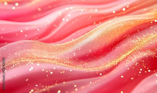 Red and pink background, golden glittering particles on the fabric surface, Generative AI