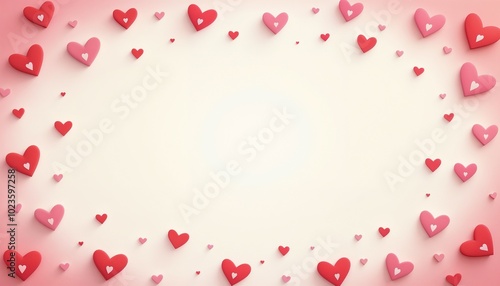 Red and Pink Heart Shapes Scattered on Light Background with Copy Space