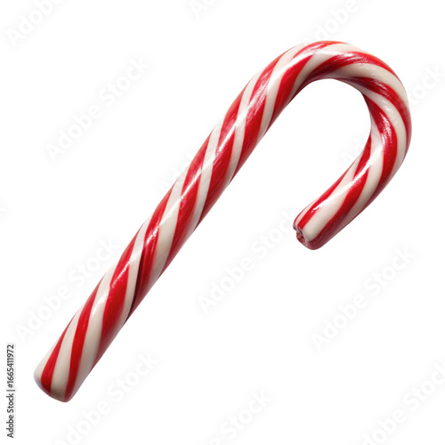 Red and White Striped Candy Cane on Transparent Background for Festive Projects