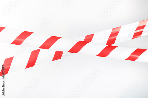 Red and white striped fencing tape on a white background.