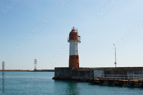Red and white striped lighthouse in the Black Sea
