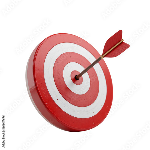Red And White Target With Arrow In Bullseye 3D Rendering Isolated Transparent Background