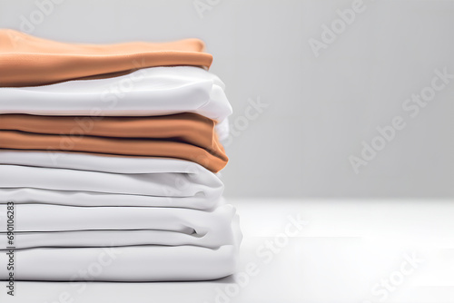 Red and white T-shirts lie in a stack. Illustration with place for text.