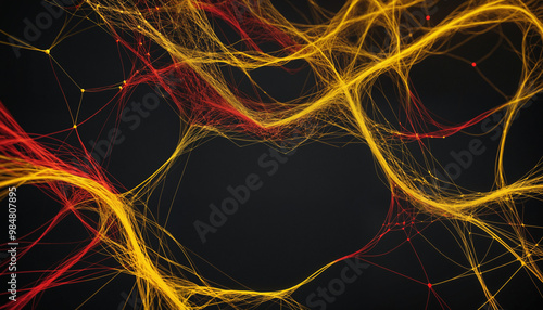 Red And Yellow connections, neural connections , 3d graphics, geometric abstract art of intelligence