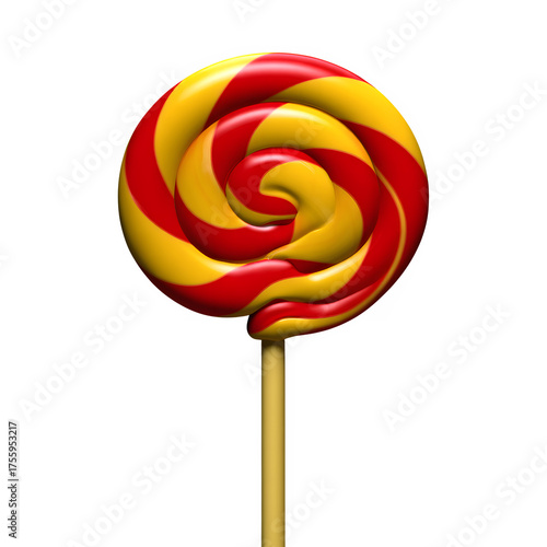 Red and yellow swirled lollipop isolated on transparent background