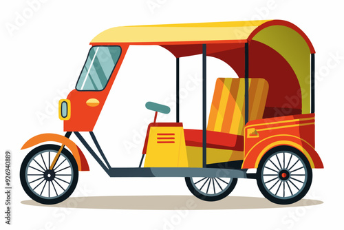 Red and Yellow Three-Wheeled Motorized Tricycle with Canopy