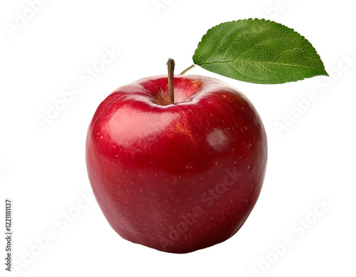 Red Apple, Fresh Fruit, Isolated, Single, Leaf, Shiny, Juicy, Healthy, Delicious, Vitamin