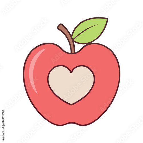 Red apple fruit heart shape love healthy food sweet fresh valentine day romance nutrition vector icon