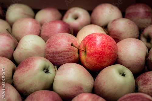 Red apple, which stands out among others. (Evrika, signal, alternative, solution, problem solving, pleasure, isolation, children-dawn, gender - concept)