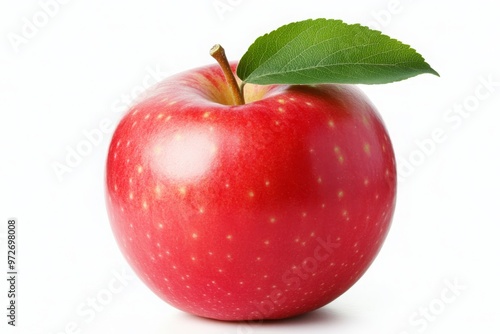 Red Apple with Green Leaf on White Background