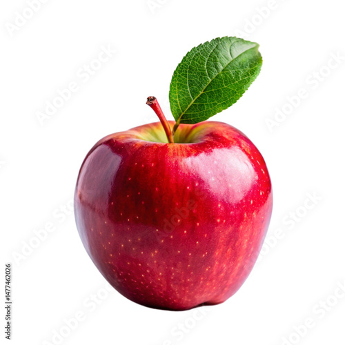 red apple with leaf isolated on white or transparent png