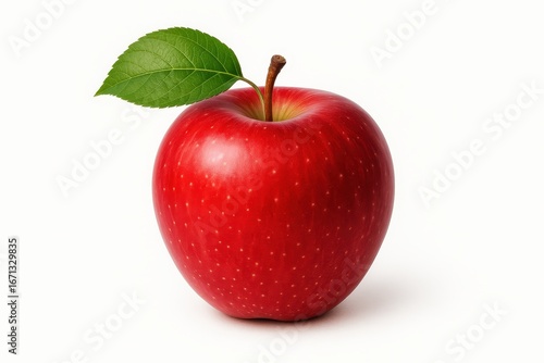 Red Apple's Delight: A vibrant red apple, perfectly ripe and radiant, is presented, offering a close-up view. Its smooth skin gleams, the verdant leaf adds a touch of freshness.