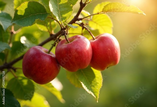 Red Apples Hanging From a Tree in Warm Sunset Light