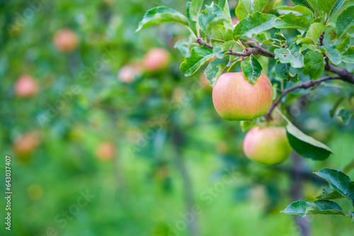 Red apples in an apple plantation in South Tyrol, San Pietro town in Italy