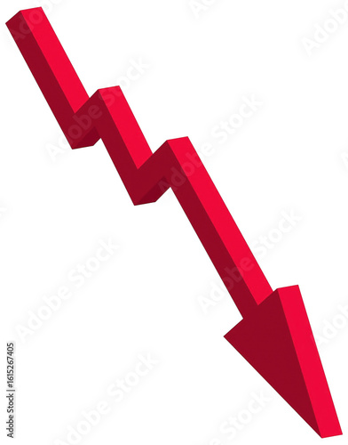 Red arrow going down stock icon on white background. Symbol of down arrow graph icon. financial market crash icon. Red Down Arrow Stock Market Crash Decline Fall icon vector.