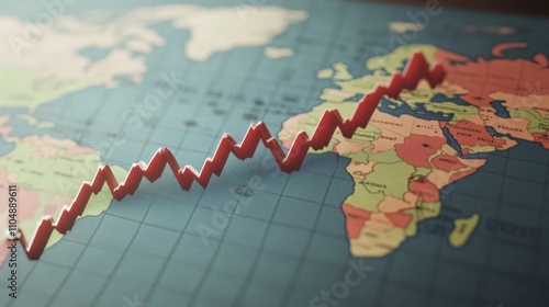 Red Arrow Graph on World Map Representing Global Economic Growth