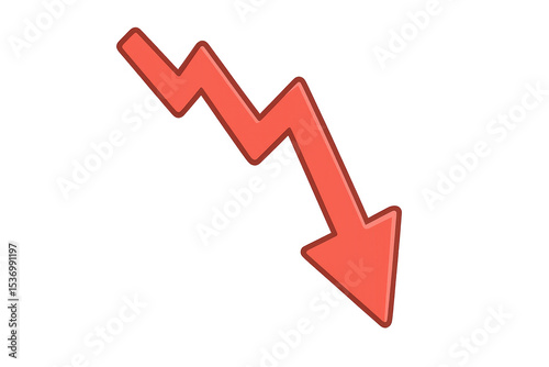 Red arrow zig-zagging downwards, illustrating economic decline or market crash, on a transparent background