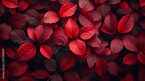 red autumn leaves nature background of barberry hello fall : Generative AI