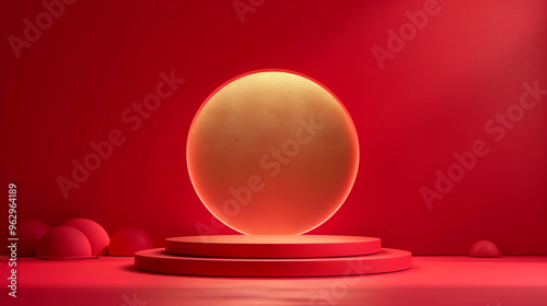Red background podium product stage studio 3d light display abstract stand award luxury.