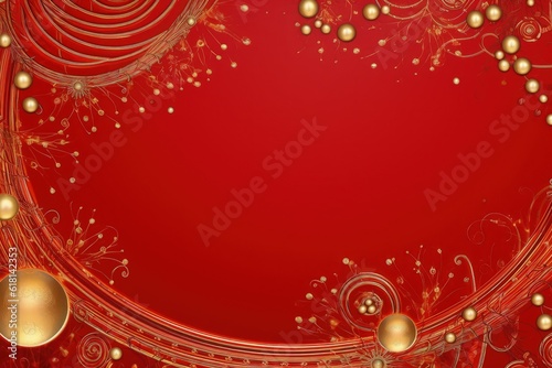 Red background with christmas decoration, space to write, christmas holiday. Generative AI