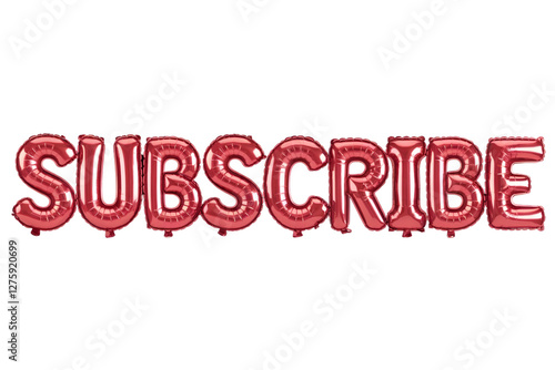 Red balloon letters spell Subscribe isolated on transparent background