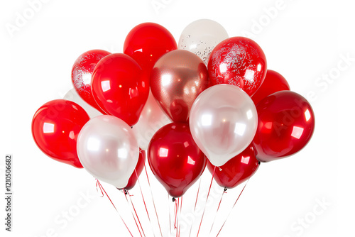 Red balloons isolated on a white background for a party celebration, an anniversary event, Valentine's Day, New Year or a Christmas Day greeting card, stock illustration image