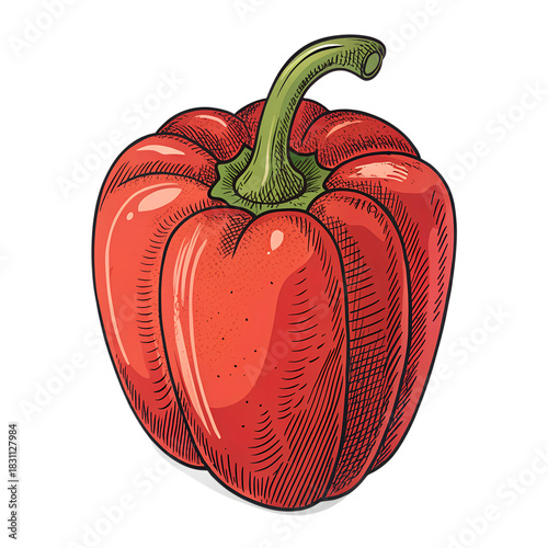 Red bell pepper clipart with soft highlight, bold vector outline, flat shading, transparent background.