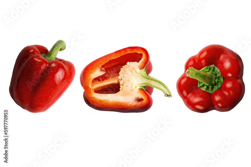 red bell pepper set isolated on white or transparent background, cut out