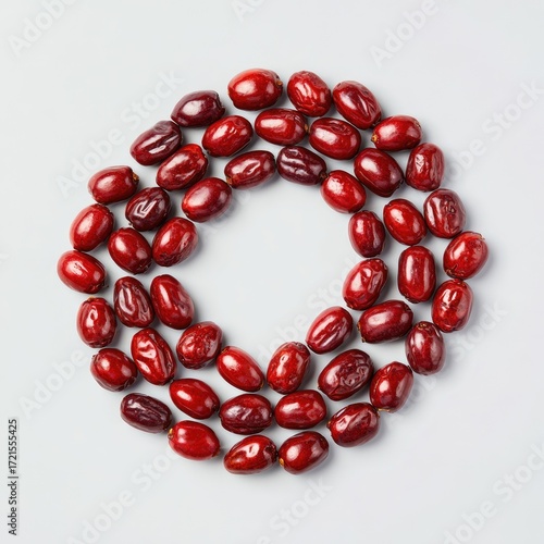 Red berries arranged in a circular frame on a light gray background, creating a minimalist, natural design