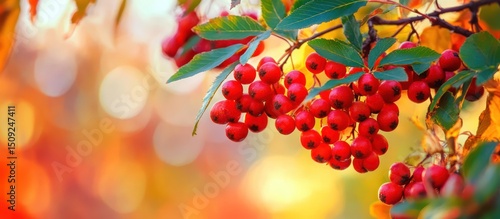 Red berries growing on a branch in nature during autumn