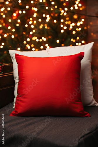 Red Blank Christmas Themed Pillow Mockup