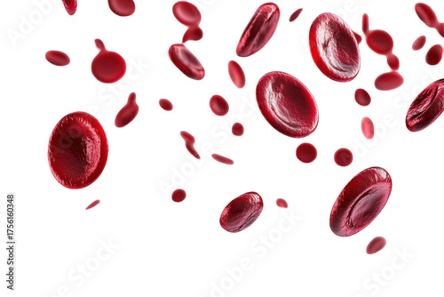 Red Blood Cells In Motion. Vital Role In Oxygen Transport And Circulation. Isolated On Transparent Background