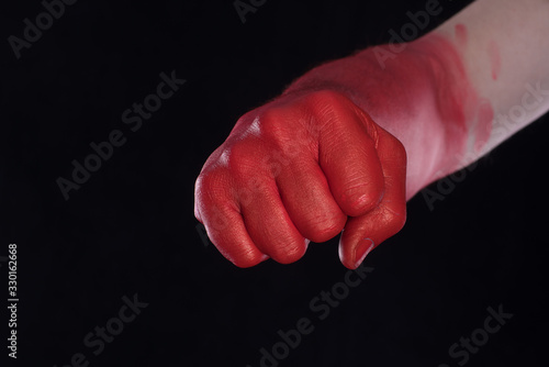 red bloody fist on a black background