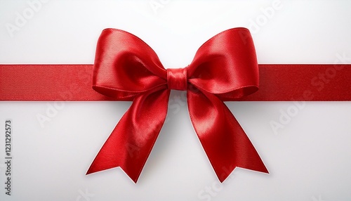red bow on a red background. Red ribbon with bow isolated on white background.