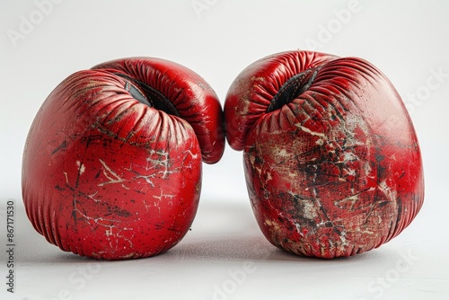 Red boxing gloves isolated on white background. Concept of boxing equipment, combat sports gear, training accessory