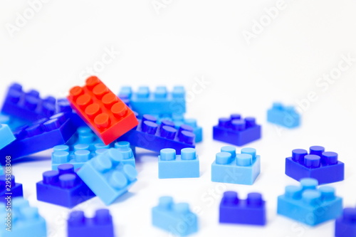 red brick block leader outstanding out of all , performance prominent business concept . plastic toy for children .