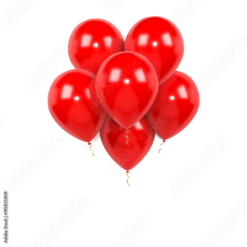 Red bundle of balloons isolated on white background. 3D illustration of celebration, party balloons