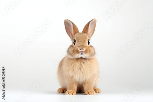 Red bunny rabbit portrait looking frontside to viewer on white background, horizontal banner