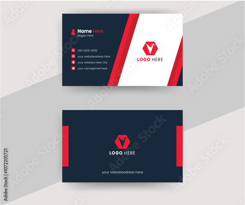 Red business card design. Double sided business card templates. Vector design.