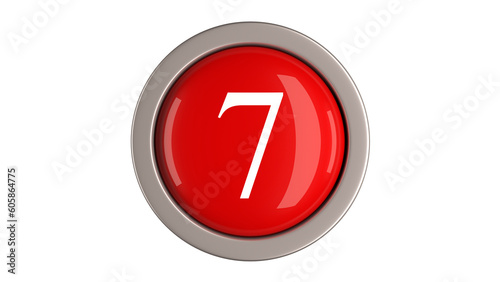Red Button 3d with Number 7 white color on top, 3d button PNG isolated white background