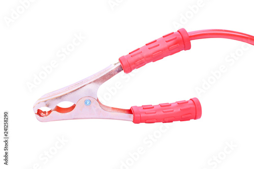 Red car battery charger tool isolated on white background with clipping path