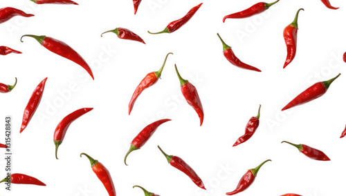 red chili peppers scattered on a white background showcasing their vivid color and shape often used in cooking for flavor and spice