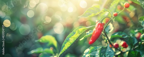 Red chilli pepper grow on the bio farm with lot of sun, vegetables healthy food banner. Generative Ai