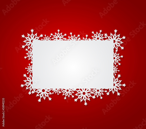 Red Christmas background with paper snowflakes.
